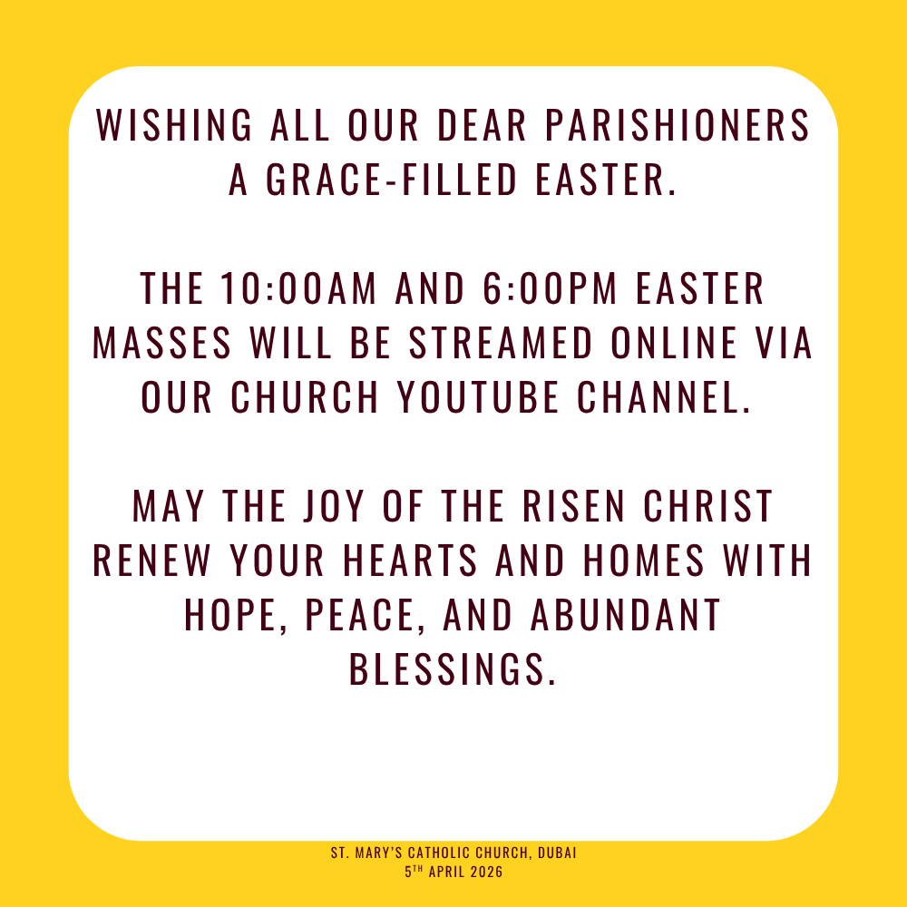 PARISH ANNOUNCEMENTS The Holy Week Program 2026 is now available on the church website and noticeboard. There will be No Mass