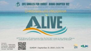 Ang CFC – Singles for Christ Chapter 1B2 at 1C3 ay malugod pong na nag-iimbita na dumalo sa kanilang Christian Life Programs.