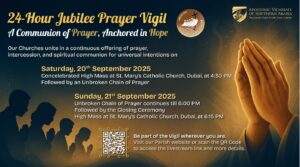 As part of the ongoing celebrations of the Jubilee Year, our parish will host the 24-hour Jubilee Prayer Vigil, beginning with the Opening Concelebrated High Mass on Saturday, 20th September at 4:30pm, and continuing with 24 hours of unceasing prayer and adoration before the Lord, with the participation of parishes across our Vicariate. The Vigil will conclude with the Closing High Mass on Sunday, 21st September, at 6:15pm.